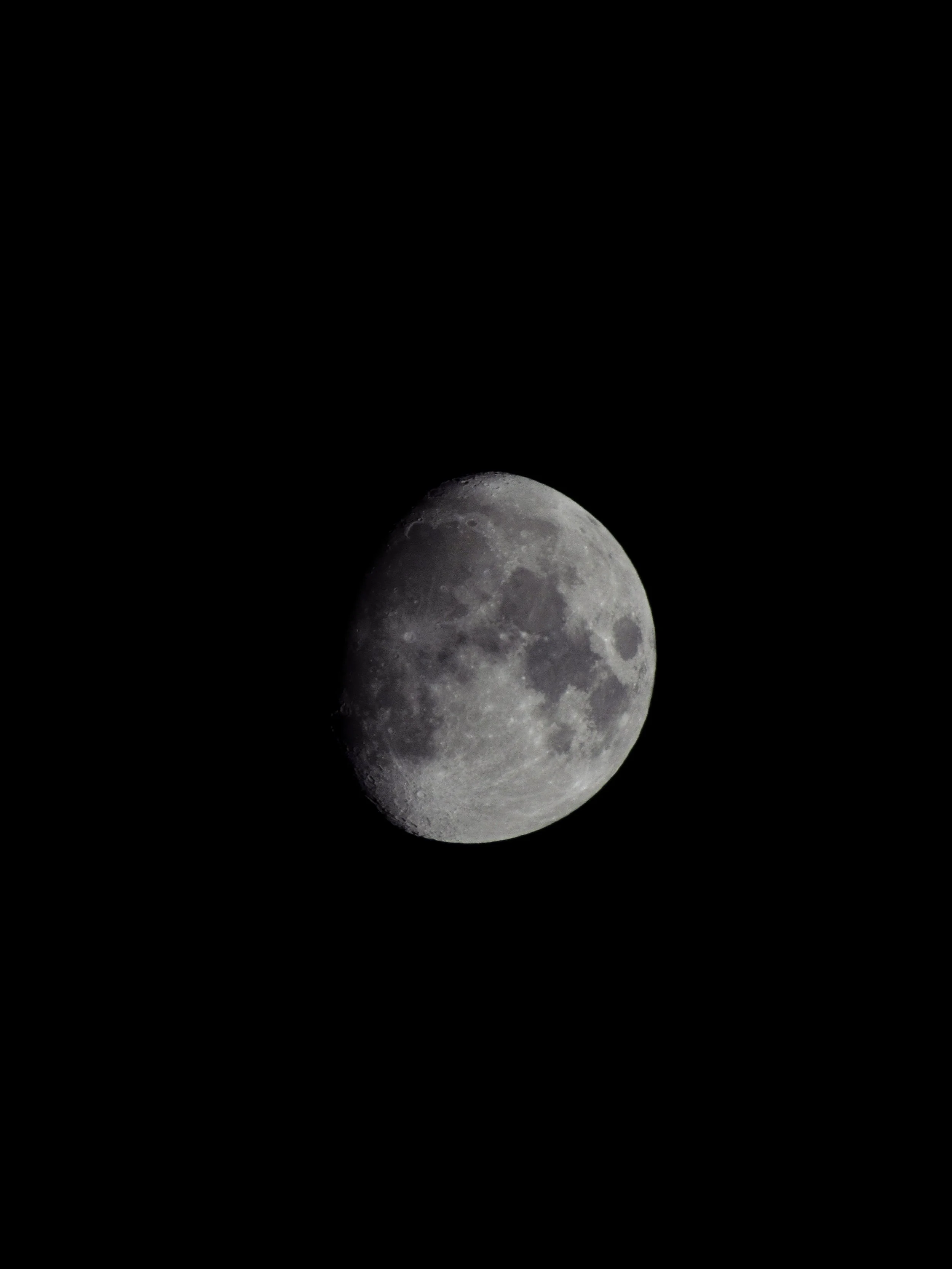 A dark, wooded winter landscape at dusk or dawn with bare trees and snow on the ground.
